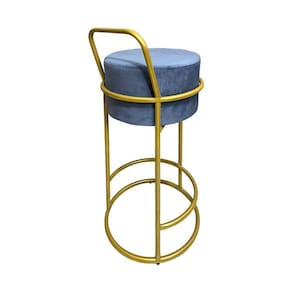 A banqueta alta redonda possui assento confortável e elegante, com base de ferro resistente que garante durabilidade. Ideal para cozinhas, bares ou áreas gourmet, combina estilo e funcionalidade.
