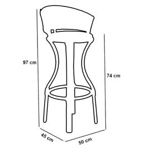 Dimensões: Altura: 96 cm. Largura: 47 cm. Profundidade: 45 cm. Altura do chão até assento: 74 cm.