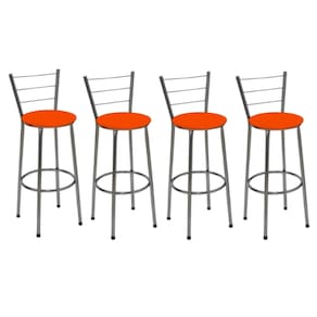 Banqueta Alta Itália Cromada com Assento Laranja Jaddi Seja para acompanhar um café rápido no início do dia ou aquela confraternização especial com os amigos, a Banqueta Alta com Encosto será uma grande aliada na composição do seu espaço. Modelo alta, ela é ideal para acompanhar bancadas e balcões, seja na sala de jantar, espaço de churrasqueira ou até mesmo em seu estabelecimento comercial. Com design simples que conta com cor sóbria, a peça embeleza o seu espaço ao mesmo tempo que garante a comodidade ideal, afinal, o assento preenchido em espuma recebe superbem o corpo além do suporte para os pés. Produto que faz toda diferença no seu ambiente. Características da Banqueta Alta com Encosto Cor da Estrutura: CromadaCor do Assento: Laranja Capacidade (kg): 120 kgMaterial da Estrutura: Tubos de Aço carbono (7/8 de polegada)Material do Assento: MDF e EspumaEncosto: Arame Dimensões da Banqueta Alta com Encosto Altura do assento até o chão (cm): 72 CmAltura do encosto até o chão (cm): 95 CmDiâmetro do assento: 32 Cm Conteúdo da Embalagem: 04 Banquetas Alta com Encosto Dicas Não deixe suas banquetas expostas ao sol por mais de 4 horas.Não use produtos abrasivos na limpeza de suas Banquetas.Usar um pano umedecido na limpeza da Banqueta e, logo em seguida, seque-as com um pano seco. A tonalidade da cor pode variar de acordo com o lote do fabricante e/ou as configurações de seu monitor. *Imagens meramente ilustrativas Garantia 3 Meses contra defeito de fabricação