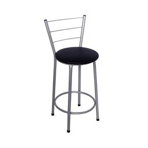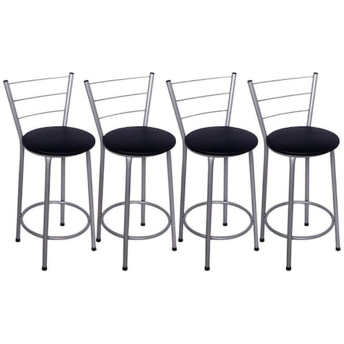 Kit 4 Banquetas Altas Itália Prata com Assento Preto Fortmix
