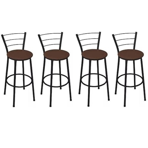 Banqueta Alta Itália Preta com Assento Marrom Fortmix Seja para acompanhar um café rápido no início do dia ou aquela confraternização especial com os amigos, a Banqueta Alta com Encosto será uma grande aliada na composição do seu espaço. Modelo alta, ela é ideal para acompanhar bancadas e balcões, seja na sala de jantar, espaço de churrasqueira ou até mesmo em seu estabelecimento comercial. Com design simples que conta com cor sóbria, a peça embeleza o seu espaço ao mesmo tempo que garante a comodidade ideal, afinal, o assento preenchido em espuma recebe superbem o corpo além do suporte para os pés. Produto que faz toda diferença no seu ambiente. Características da Banqueta Alta com Encosto Cor da Estrutura: Preta Cor do Assento: Marrom Capacidade (kg): 120 kg Material da Estrutura: Tubos de Aço carbono (7/8 de polegada) Material do Assento: MDF e Espuma Encosto: Arame Dimensões da Banqueta Alta com Encosto Altura do assento até o chão (cm): 72 Cm Altura do encosto até o chão (cm): 95 Cm Diâmetro do assento: 32 Cm Conteúdo da Embalagem: 04 Banqueta Alta com Encosto Dicas Não deixe suas banquetas expostas ao sol por mais de 4 horas. Não use produtos abrasivos na limpeza de suas Banquetas. Usar um pano umedecido na limpeza da Banqueta e, logo em seguida, seque-as com um pano seco. A tonalidade da cor pode variar de acordo com o lote do fabricante e/ou as configurações de seu monitor. *Imagens meramente ilustrativas Garantia 3 Meses contra defeito de fabricação