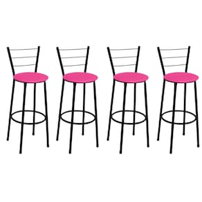 Banqueta Alta Itália Preta com Assento Rosa Fortmix