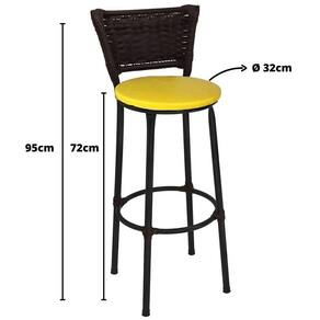 Banqueta Alta Preta Junco Argila com Assento Amarelo Fortmix