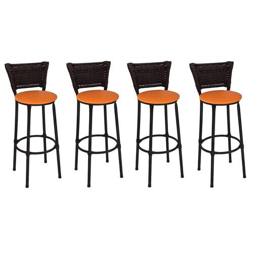 Banqueta Alta Preta Junco Argila com Assento Laranja Fortmix