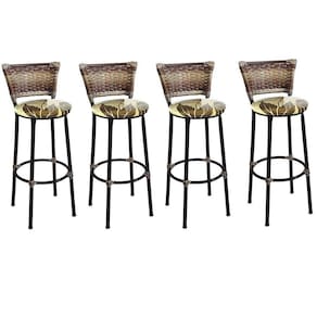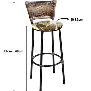 Banqueta Alta Preta Junco Capuccino com Assento Floral Marrom Fortmix