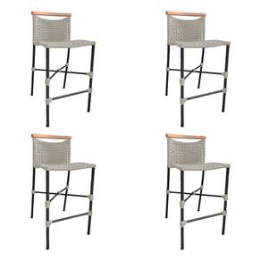 Kit 4 Banquetas Anne em Corda Náutica Base em Alumínio Preta com Detalhe em Madeira Areia - Bege