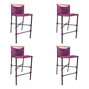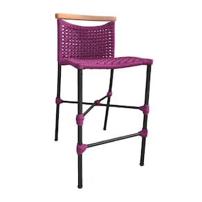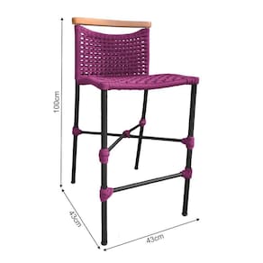 Kit 4 Banquetas Anne Em Corda Náutica Base Em Alumínio Preta Com Detalhe Em Madeira Rosa - Cor: Rosa - Preto