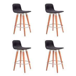 Kit 4 Banquetas Baixas Linea Aço Champanhe para Cozinha Ilha Gourmet Varanda - Preto Assento