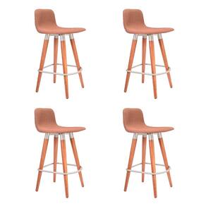 Kit 4 Banquetas Baixas Linea Aço Champanhe para Cozinha Ilha Gourmet Varanda - Terracota Assento - Laranja