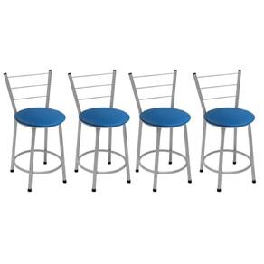 Kit 4 Banquetas Baixas Prata com Assento Azul FortmixSeja para acompanhar um café rápido no início do dia ou aquela confraternização especial com os amigos, a Banqueta Baixa com Encosto será uma grande aliada na composição do seu espaço. Modelo baixa, ela é ideal para acompanhar bancadas e balcões, seja na sala de jantar, espaço de churrasqueira ou até mesmo em seu estabelecimento comercial.Com design simples que conta com cor sóbria, a peça embeleza o seu espaço ao mesmo tempo que garante a comodidade ideal, afinal, o assento preenchido em espuma recebe superbem o corpo além do suporte para os pés. Produto que faz toda diferença no seu ambiente.Características da Banqueta Baixa com EncostoCor da estrutura: PrataCor do Assento: AzulCapacidade (kg): 120 kgMaterial da estrutura: Tubos de Aço carbono (7/8 de polegada)Material do assento: MDF e EspumaEncosto: JuncoDimensões Altura do assento até o chão (cm): 47 CmAltura do encosto até o chão (cm): 69 CmDiâmetro do assento: 32 CmConteúdo da Embalagem: 04 Banquetas Baixas com EncostoDicasNão deixe suas banquetas expostas ao sol por mais de 4 horas;Não use produtos abrasivos na limpeza de suas Banquetas;Usar um pano umedecido na limpeza da Banqueta e, logo em seguida, seque-as com um pano seco.A tonalidade da cor pode variar de acordo com o lote do fabricante e/ou as configurações de seu monitor.*Imagens meramente ilustrativasGarantia3 Meses contra defeito de fabricação