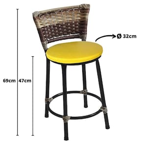 Banqueta Baixa Preta Junco Capuccino com Assento Amarelo Fortmix   Seja para acompanhar um café rápido no início do dia ou aquela confraternização especial com os amigos, a Banqueta Baixa com Encosto será uma grande aliada na composição do seu espaço. Modelo baixa, ela é ideal para acompanhar bancadas e balcões, seja na sala de jantar, espaço de churrasqueira ou até mesmo em seu estabelecimento comercial.   Com design simples que conta com cor sóbria, a peça embeleza o seu espaço ao mesmo tempo que garante a comodidade ideal, afinal, o assento preenchido em espuma recebe superbem o corpo além do suporte para os pés.  Produto que faz toda diferença no seu ambiente.   Características da Banqueta Baixa com Encosto   Cor da Estrutura: Preta Cor do Assento: Amarelo Capacidade (kg): 120 kg Material da estrutura: Tubos de Aço carbono (7/8 de polegada) Material do assento: MDF e Espuma Encosto: Junco   Dimensões    Altura do assento até o chão (cm): 47 Cm Altura do encosto até o chão (cm): 69 Cm Diâmetro do assento: 32 Cm   Conteúdo da Embalagem: 04 Banqueta Baixa com Encosto   Dicas   Não deixe suas banquetas expostas ao sol por mais de 4 horas; Não use produtos abrasivos na limpeza de suas Banquetas; Usar um pano umedecido na limpeza da Banqueta e, logo em seguida, seque-as com um pano seco.   A tonalidade da cor pode variar de acordo com o lote do fabricante e/ou as configurações de seu monitor.   *Imagens meramente ilustrativas   Garantia   3 Meses contra defeito de fabricação