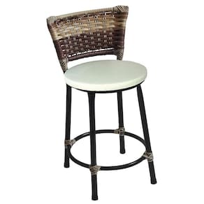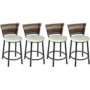 Kit 4 Banquetas Baixas Preta com Encosto Junco Capuccino Assento Branco - Preto