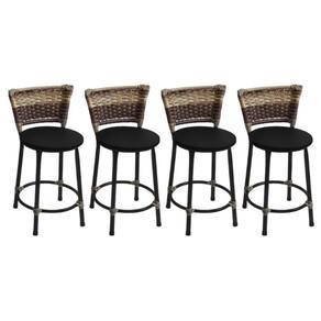 Kit 4 Banquetas Baixas Preta com Encosto Junco Capuccino Assento Preto