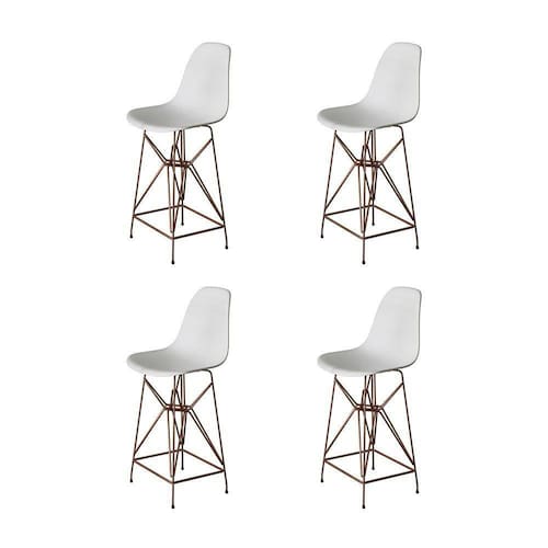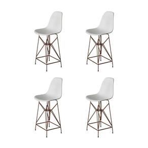 Kit 4 Banquetas Bistrô Alta Eames Branca Base Ferro Cobre - Cor: Branco