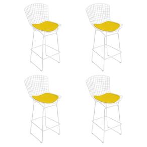 AS IMAGENS SÃO MERAMENTE ILUSTRATIVAS E PODEM SOFRER VARIAÇÕES DE COR E PEQUENOS DETALHES DE ACORDO COM O SEU MONITOR, ILUMINAÇÃO DO AMBIENTE E ATÉ MESMO A SUA PERCEPÇÃO VISUAL.Kit 4 Banquetas Bistrà Bertoia Branca D80 com Assento Amarelo