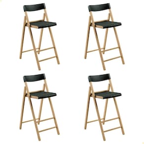4 Un - Cadeira Dobrável Alta Tramontina Potenza Preto em Madeira Tauari FSC com Acabamento Natural 13700380