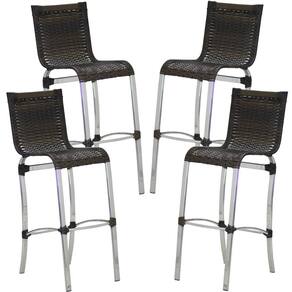 Kit 4 Banquetas em Alumínio e Fibra Sintética Haiti Para Cozinha, Edícula Trama - Marrom Escuro