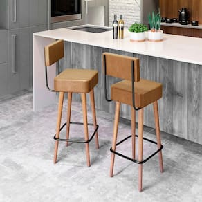 A banqueta Barcelona, possui 04 pés de madeira eucalipto com 60 cm de altura, e encosto estruturado, com seu design moderno, pode ser usada em sua área gourmet, área externa.