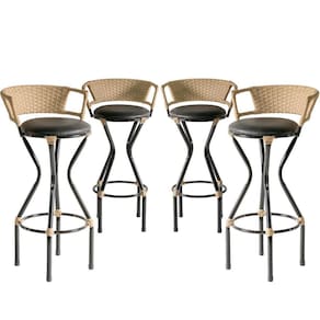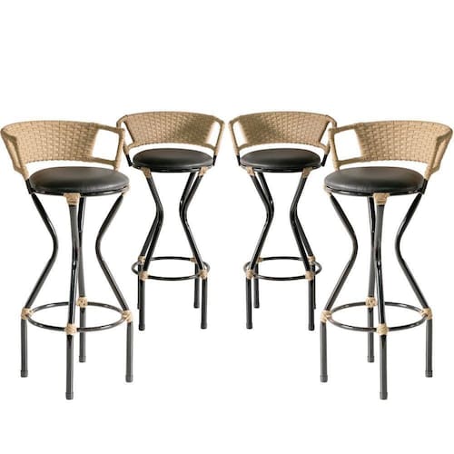 Kit 4 Banquetas Charme Com Assento Estofado Para Bancada, Bar, Balcão, área Gourmet - Teca Estonado/preto
