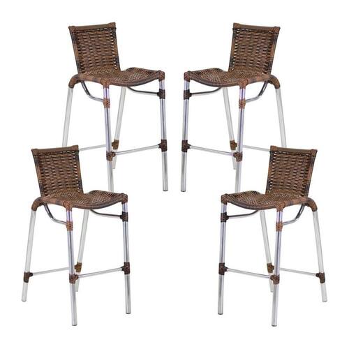 Kit 4 Banquetas Fortaleza Em Alumínio Alta Edícula Cozinha e Balcao - Marrom