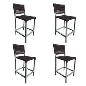 Kit 4 Banquetas França em Corda Náutica e Base em Alumínio Cinza para Área Gourmet Marrom