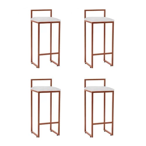 Kit 4 Banquetas Industrial Alta Bar Cozinha Bistrô Em Aço Dori Cobre Assento Suede Branco