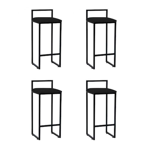 Kit 4 Banquetas Industrial Alta Bar Cozinha Bistrô Em Aço Dori Preta Assento Suede Preto - Cor: Preto