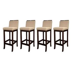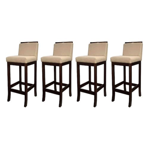 CARACTERÍTICAS TÉCNICAS: - Produzido em Madeira Maciça de Reflorestamento - Acabamento em Verniz na cor Capuccino - Assento Preenchido com Espuma D26 - Encosto Preenchido com Espuma D23 - Revestimento em Suede na cor Bege *Indicada para Bancadas/Mesas com Alt. 90/95cm *Kit Composto por QUATRO Banquetas Turim *PRODUTO ENVIADO MONTADO.