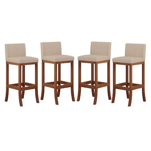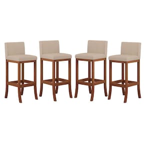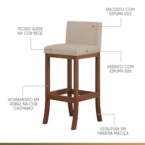 Kit 4 Banquetas Média Estofada para Cozinha Americana Espanha Madeira Maciça Castanho Suede CCS - Bege