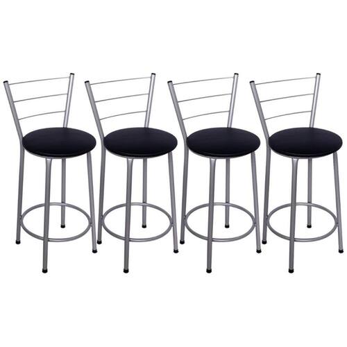 Kit 4 Banquetas Médias Prata com Encosto Assento Preto