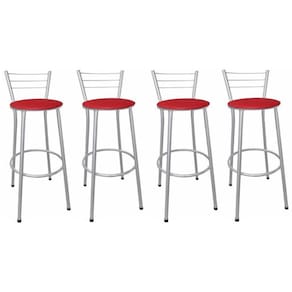 Kit 4 Banquetas Médias Prata com Assento Vermelho FortmixSeja para acompanhar um café rápido no início do dia ou aquela confraternização especial com os amigos, a Banqueta Média com Encosto será uma grande aliada na composição do seu espaço. Modelo Média, ela é ideal para acompanhar bancadas e balcões, seja na sala de jantar, espaço de churrasqueira ou até mesmo em seu estabelecimento comercial.Com design simples que conta com cor sóbria, a peça embeleza o seu espaço ao mesmo tempo que garante a comodidade ideal, afinal, o assento preenchido em espuma recebe superbem o corpo além do suporte para os pés. Produto que faz toda diferença no seu ambiente.Características da Banqueta Média com EncostoCor da Estrutura: PrataCor do Assento: VermelhoCapacidade (kg): 120 kgMaterial da estrutura: Tubos de Aço carbono (7/8 de polegada)Material do assento: MDF e EspumaEncosto: ArameDimensões da Banqueta Média com Encosto Altura do assento até o chão (cm): 60 CmAltura do encosto até o chão (cm): 83 CmDiâmetro do assento: 32 CmConteúdo da Embalagem: 04 Banquetas Médias com EncostoDicasNão deixe suas banquetas expostas ao sol por mais de 4 horas.Não use produtos abrasivos na limpeza de suas Banquetas.Usar um pano umedecido na limpeza da Banqueta e, logo em seguida, seque-as com um pano seco.A tonalidade da cor pode variar de acordo com o lote do fabricante e/ou as configurações de seu monitor.*Imagens meramente ilustrativasGarantia3 Meses contra defeito de fabricação
