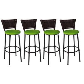 Kit 4 Banquetas Médias Preta com Encosto Junco Argila Assento Verde - Preto