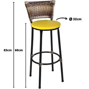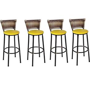 Kit 4 Banquetas Médias Preta Junco Capuccino com Assento Amarelo FortmixSeja para acompanhar um café rápido no início do dia ou aquela confraternização especial com os amigos, a Banqueta Média com Encosto será uma grande aliada na composição do seu espaço. Modelo média, ela é ideal para acompanhar bancadas e balcões, seja na sala de jantar, espaço de churrasqueira ou até mesmo em seu estabelecimento comercial.Com design simples que conta com cor sóbria e junco, a peça embeleza o seu espaço ao mesmo tempo que garante a comodidade ideal, afinal, o assento preenchido em espuma recebe superbem o corpo além do suporte para os pés. Produto que faz toda diferença no seu ambiente.Características da Banqueta Média com Encosto JuncadoCor da Estrutura: PretaCor do Assento: AmareloCapacidade (kg): 120 kgMaterial da estrutura: Tubos de Aço carbono (7/8 de polegada)Material do assento: MDF e EspumaEncosto: Junco CapuccinoDimensões da Banqueta Média com Encosto Juncado Altura do assento até o chão (cm): 60 CmAltura do encosto até o chão (cm): 83 CmDiâmetro do assento: 32 CmConteúdo da Embalagem: 04 Banquetas Médias com Encosto JuncadoDicasNão deixe suas banquetas expostas ao sol por mais de 4 horas.Não use produtos abrasivos na limpeza de suas Banquetas.Usar um pano umedecido na limpeza da Banqueta e, logo em seguida, seque-as com um pano seco.A tonalidade da cor pode variar de acordo com o lote do fabricante e/ou as configurações de seu monitor.*Imagens meramente ilustrativasGarantia3 Meses contra defeito de fabricação