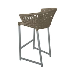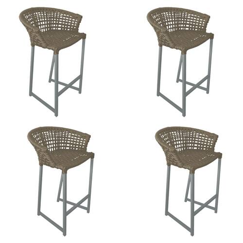 Kit 4 Banquetas Reis em Corda Náutica e Base em Alumínio Cinza para Área Gourmet - Externa Rami - Bege