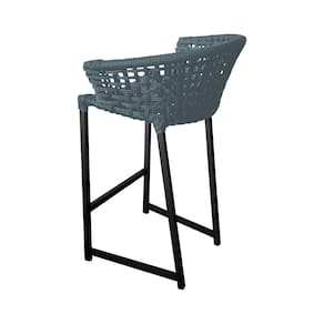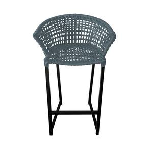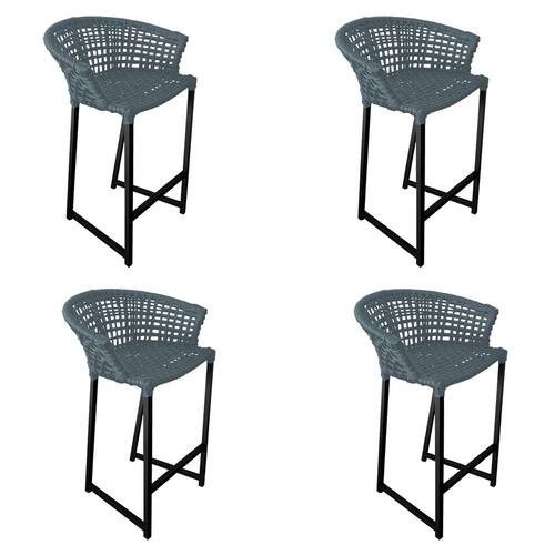 Kit 4 Banquetas Reis em Corda Náutica e Base em Alumínio Preta para Área Gourmet - Externa Cinza