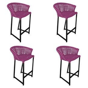 Kit 4 Banquetas Reis Em Corda Náutica E Base Em Alumínio Preta Para área Gourmet - Externa Rosa - Cor: Rosa