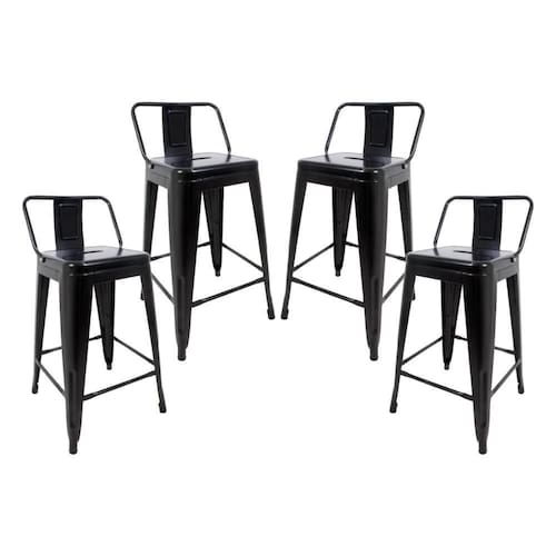 Kit 4 Banquetas Tolix Industrial Médias com Encosto Pretas