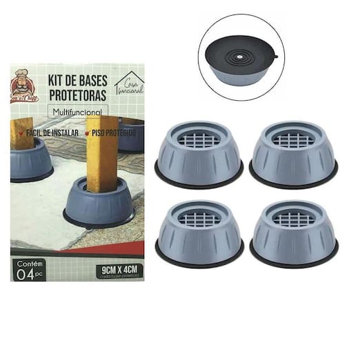 Descriçãokit 4 Bases Pés Protetores para Fogão Sofá Moveis ---Feito de plástico desenvolvido para a proteção do seu piso. Indicado para pisos laminado, madeira entre outros.--- Características: ---- Tamanho Aproximado Das Bases: 3,5 x 9cm- Cor: Cinza- Composição: Plástico- 4 Unidades- Não enferruja os pés dos moveis Marca: Bon'S Cheff