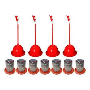 4 Bebedouros Pendulares + 7 Comedouros Galv. 5kg Para Aves Kit contendo 4 unidades de Bebedouro Pendular para Aves + 7 unidades de Comedouro Galvanizado Prato Plástico Para Aves 5kg. ATENÇÃO Devido ao limite de peso e dimensões dos Correios, só é possível enviar 1 kit por pedido, ou seja, se deseja comprar mais de uma unidade deste kit gentileza realizar as compras separadamente. Bebedouro: Adequado para todo período de alojamento das aves; É equipado com Válvula pendular GRT que proporciona precisão na dosagem da água, contém um gancho para vacinação; A cúpula pendular GRT injetada em polipropileno, aditivado com 0,02% UV contra raios ultravioletas, o que garante maior durabilidade; A cor vermelha torna-se mais atrativa para as aves; Robusta e com peso ideal para melhor estabilidade do bebedouro; Possui calha com pequena inclinação voltada para dentro,proporcionando uma cama de frango mais seca; Capacidade para 80 aves cada; Tamanho do cabo: 0,50cm cada. Comedouro: Conhecido como comedouro suspenso, Utilizado por sitiantes em aviários, tubo galvanizado, base prato plástico vermelho; Volume 5kg de ração ou milho; Possui regulagem na travessa superior em conjunto com a haste; O prato com 26 x 26 Cm é injetado com material 100% puro virgem PP H 103 com 0,02% UV contra raios ultravioletas; Altura Total 26 Cm; Fácil acesso das aves ao alimento; Peso: 630g cada. Ean: 7800890716820