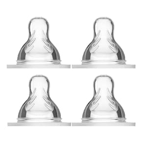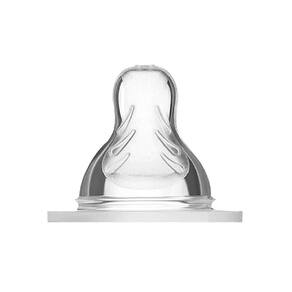Ao invés de um furo, eles possuem corte em formato de X e contam com uma superfície texturizada e sedosa. Além do formato simétrico para um posicionamento correto durante o uso, eles também possuem uma válvula lateral para auxiliar na redução da ingestão de ar durante a alimentação, que, é o causador de desconfortos abdominais nos bebês, proporcionando um fluxo contínuo e adequado do alimento.