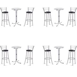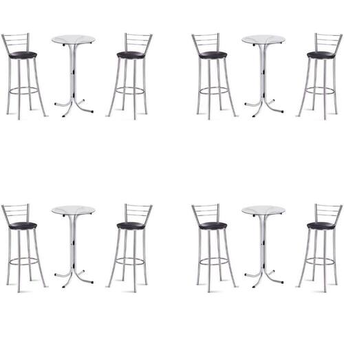 Kit 4 Bistros Com 4 Banquetas Cromadas-gatmagazine O conjunto Bistrô com banquetas GatMagazine além de bonito e charmoso traz harmonia para o seu ambiente!O Bistrô e a banqueta são feitos em aço cromado que traz mais resistência ao produto,O tampo do Bistrô é em vidro de 6mm com 60 centimetros de diamêtro.O produto é próprio para cozinhas,sala de jantar ou espaços gourmet. Marca: NOVA DECOR