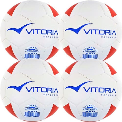 Bola Futsal Vitoria Baby Sub 13 Max 200 Infantil (11 a 13 anos) Vai 4 unidades pelo valor anunciado Características: Circunferência: 55 a 59 cm, Peso: 350 a 380 g, Câmara: Butil, Superfície: Matrizada, Material: PVC, Miolo: Removível e lubrificado Feita exclusivamente para as quadras de futsal com pisos irregulares, A bola de futsal Vitória foi desenvolvida para um maior durabilidade, mas velocidade nos passes e com baixo custo. Com seus gomos matrizados diminuem a superficie de atrito comum as bolas costuradas, tornando o jogo mais rápido e dinâmico. Indicada por Professores de Educação Física para equipes de Futsal e Escolas com equipes de competição.