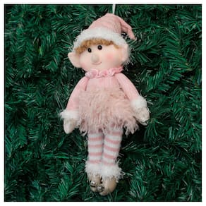 Kit 4 Boneco Pendente Natal Duende Mamãe Noel Rosa 30cm