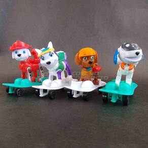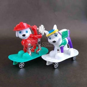 O conjunto de bonecos acompanha os principais personagens e ainda Skates para cada Cão, para diversão da criançada!