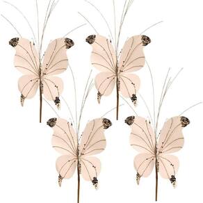 Kit 4 Borboletas Pick Natalina Decorada com Glitter Champanhe 23cm x 15cm