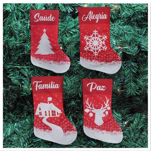 Kit 4 Botas Meias Enfeite Natalino Temático 47cm
