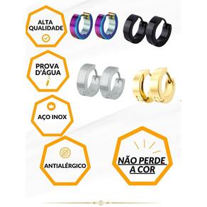 Kit 4 brinco argola lisa 10mm unissex furta cor preto prata dourado preto aço inox Kit 4 brinco argola lisa 10mm unissex furta cor preto prata dourado preto aço inox Kit completo argolas cores preto, prata, dourado e furta cor unissex é uma ótima opção para presentear um amigo ou namorado. Brinco em aço inox, não descasca e não enferruja, podendo usar diariamente. ========================================================= Fotos reais do produto na galeria Modelo a prova d'água, podendo usar em piscinas e praias, não descasca, não escurece, não perde a cor Detalhes técnicos: Marca: visujóias Modelo: brinco argola masculina Diâmetro: 10mm Espessura do brinco: 4mm Incluso: 4 pares do brinco argola Material: aço inoxidável. : a tem prazo de 6 meses. Todas as peças possuem tratamento antialérgico. =============================================================================== P:minha compra é segura R:toda compra que é feita aqui está em ambiente seguro, isso significa que se caso ocorra algum imprevisto faremos o estorno de seu pagamento. R: sim. P: produto é a prova d'água R: sim, pode usar em piscinas e praias que não escurece. P: tem R: sim, todos os nossos produtos tem de 6 meses, contra defeitos de fabricação. Todas as informações de cuidados são enviados junto com o produto. P: posta em quanto tempo P: posso trocar se não servir R: sim, enviamos nosso contato junto com o produto para orientação sobre troca. P: posso devolver se não gostar R: sim, caso não goste do produto é só entrar em contato conosco que iremos orientá-lo como efetuar a devolução. Dúvidas Pergunte à vontade, estamos aqui. ficaremos felizes em responder rapidamente. Aguardamos sua compra e estamos ao seu dispor : Marca: Não Informado Ean: 7732647212449