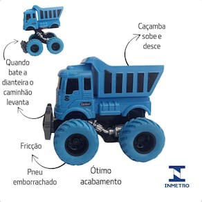 - pneu emborrachado; - quando bate o carrinho levanta; - colorido; - tamanho de cada caminhão aproximadamente: 114 cm c x 11 cm a x 9 cm l ; - peso aproximado: 130g por unidade; - feito em plástico resistente e seguro; - rodas com fricção - desliza fácil em diferentes superfícies; - indicado para crianças a partir de 3 anos. -