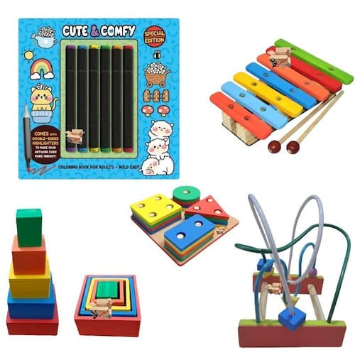 Kit 4 brinquedos pedagógicos em madeira + livro + canetinhas Cor: kit brinq + livro azul Agradecemos por sua visita em nosso anuncio Somos a rafabox Kit atividades 4 brinquedos pedagógicos em madeira + livro colorir + canetinhas - primeira infância Contem: 01 kit completo para a primeira infância: 4 brinquedos pedagógicos em madeira + 01 livro cute e comfy com 06 canetinhas O kit primeira infância é a combinação perfeita para o desenvolvimento do seu bebê com 4 brinquedos pedagógicos em madeira de alta qualidade e um livro cute e comfy com 6 canetinhas, este conjunto completo estimula a coordenação motora, a criatividade e a percepção sensorial. Um presente ideal que une o aprendizado lúdico dos brinquedos de madeira com a diversão interativa das canetinhas. Invista no futuro do seu pequeno com este kit brinquedos educativos para a primeira infância os 4 brinquedos pedagógicos em madeira garantem durabilidade e segurança, enquanto o livro cute e comfy com suas 6 canetinhas convida à exploração artística e ao desenvolvimento da escrita. Uma experiência completa que nutre a imaginação e o aprendizado de forma envolvente e divertida. Procurando o presente ideal para uma criança Nosso kit primeira infância oferece o melhor dos dois mundos: 4 brinquedos pedagógicos em madeira que desenvolvem habilidades essenciais e um livro cute e comfy que estimula a criatividade com 6 canetinhas coloridas. Um combo pensado para horas de diversão e um desenvolvimento infantil abrangente. Kit contem: 01 aramado tamanho m 01 prancha de seleção 01 xilofone musical faz som de brinquedo 01 cubo de encaixe / empilhar 01 kit livro + canetinhas cute & comfy para colorir Dimensões aproximadas: - prancha base : 14cm x 14cm Circulo: 4,5cm Quadrado: 5,5cm Triangulo: 6,5cm Retângulo: 3cm x 5cm Espessura das peças: 1cm - aramado tamanho m A 18 cm x l 14cm x c 14 cm aproximado - xilofone faz som de brinquedo Tira maior: 2,5cm x 19cm Tira menor: 2,5cm x 13,5cm - cubo de encaixe Cubo maior: 4cm x 8cm x 8cm Cubo menor: 3cm x 3cm x3cm Kit livro + canetinhas cute & comfy para colorir e relaxar - editora online Desenhos amplos e de fácil preenchimento: proporciona uma experiência relaxante e envolvente. Acompanha 6 marcadores de ponta dupla: perfeitos para detalhes precisos e preenchimentos suaves. Tamanho confortável 21,0 x 21,0 cm : ideal para manuseio prático e fácil transporte. Alta resolução: impressões nítidas e detalhadas, garantindo um resultado incrível. Produtos feito em mdf e tinta atóxica Indicado para crianças acima de 3 anos Cores variam de acordo com Podutos 100% artesanais Não cobrimos mau uso Este é um anúncio da rafabox, empresa que atua há mais de 8 anos no comércio eletrônico. Confira algumas vantagens de comprar na rafabox - temos cnpj, somos uma empresa consolidada Nossos horários de atendimento: - seg a sex das 9h00 às 17h00 - sábados das 9h00 ao meio-dia --------- informações importantes ---------- - os pedidos serão enviados em até 1 dia útil após aprovados Salvo exceções como instabilidades em sistemas fiscais e logísticos, Grande fluxo de pedidos ocasionados por promoções, Épocas comemorativas do ano e/ou lançamentos de produtos Ou devido a atrasos ocasionados por empresas terceirizadas transportadoras, plataformas on-line, fornecedores etc. . Manteremos você informado em qualquer caso de atraso na postagem de sua encomenda. Homologação Inmetro: ABCP-BRI-0272-2022-03 Marca: Não Informado