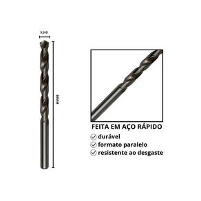 - 04 Brocas Paralela de Aço Rápido HSS de 5,0mm.